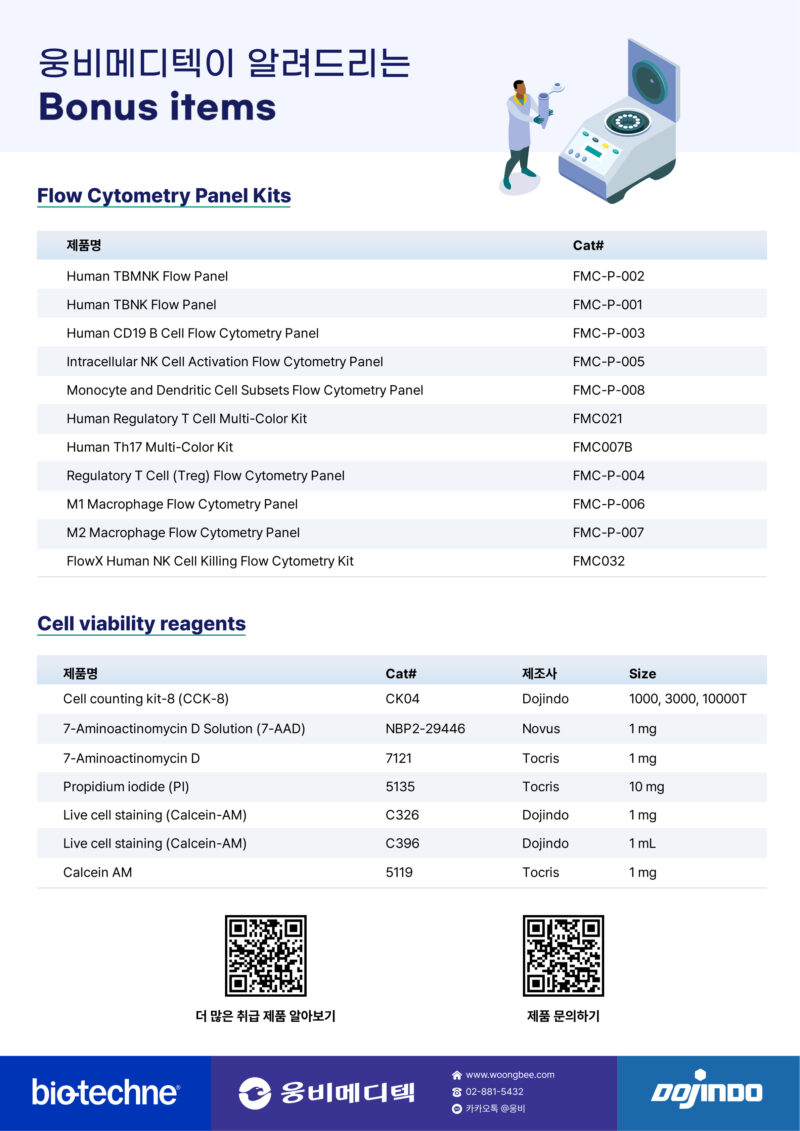 세포 생존을 다양한 방법으로 평가하실 수 있는 reagents 입니다.