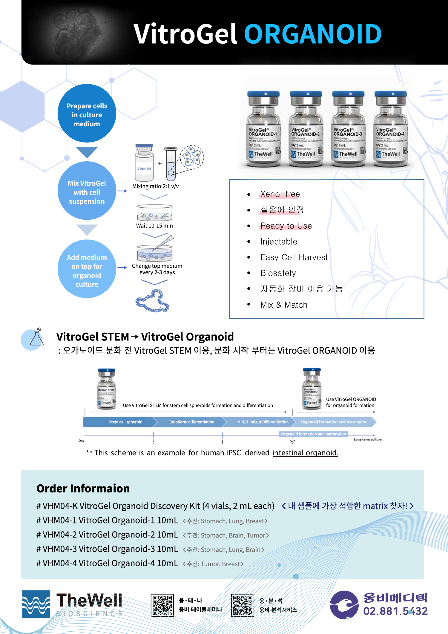 : 오가노이드 분화 전 VitroGel STEM 이용, 분화 시작 부터는 VitroGel ORGANOID 이용